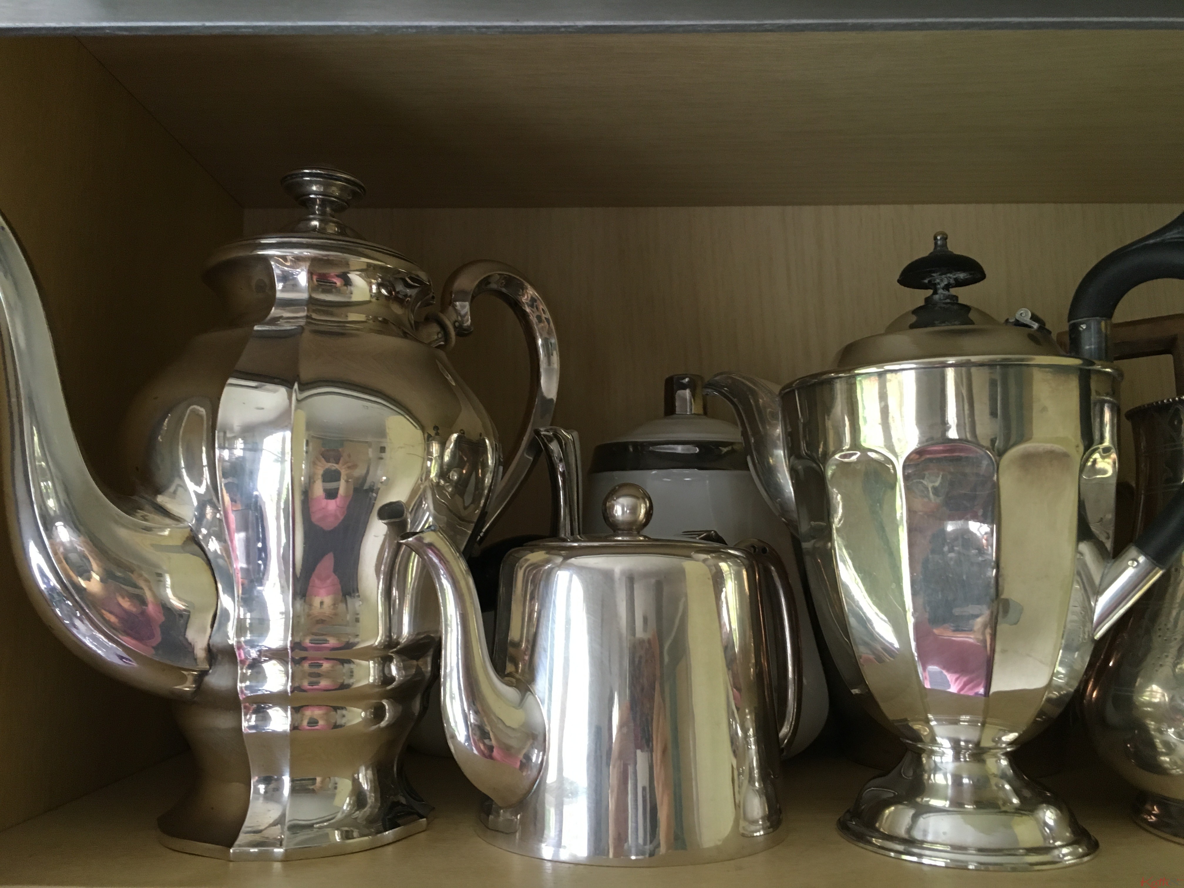 J’ai donc prélevé un peu de cendres dans ma cheminée et j’ai frotté la théière de tante Marguerite avec une vieille brosse à dents un peu dubitative au début mais totalement convaincue au bout de quelques minutes : à mon grand étonnement la théière est devenue étincelante après l’avoir rincée et essuyée.