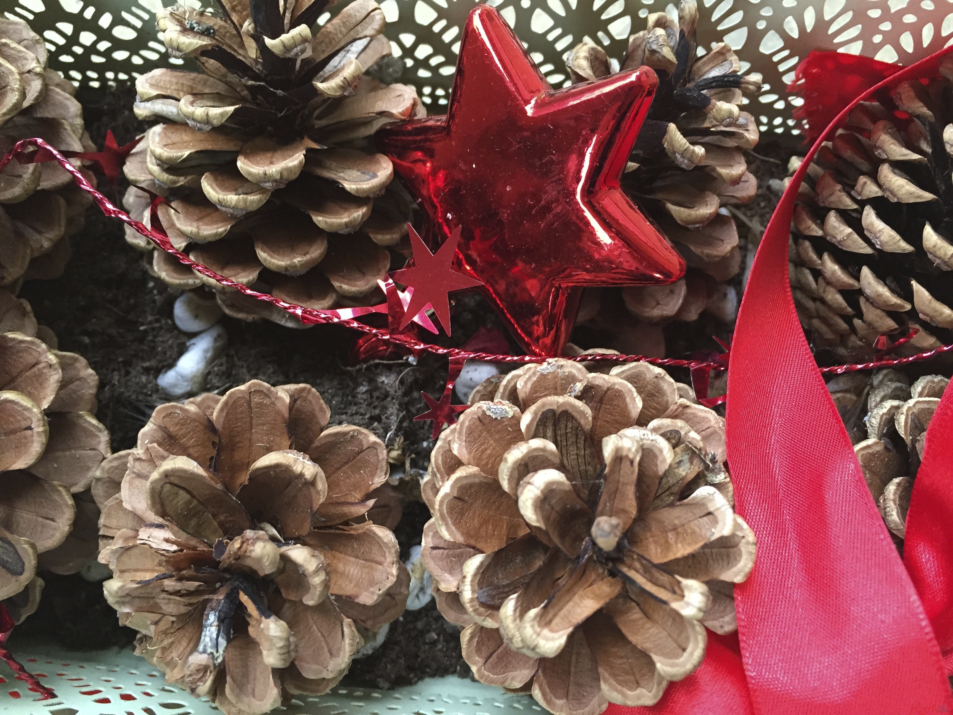 La décoration  de Noël commence à l’extérieur de la maison avec une couronne sur la porte, une jardinière remplie de pommes de pin, un panier garni de boules (rouges),des pots de jacinthe ou des lanternes posés çà et là et bien sûr un père Noël qui vous souhaite la bienvenue .